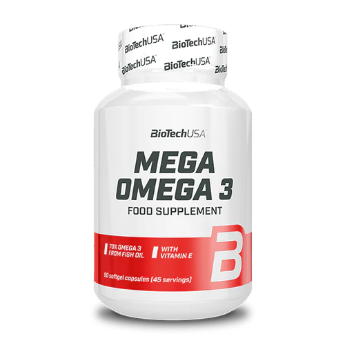 BioTechUSA Mega Omega 3 is a high-strength omega-3 fish oil supplement delivering an exceptional 70% omega-3 fatty acid content from EPA and DHA. These essential fatty acids play a key role in supporting brain function, vision, and cardiovascular health.